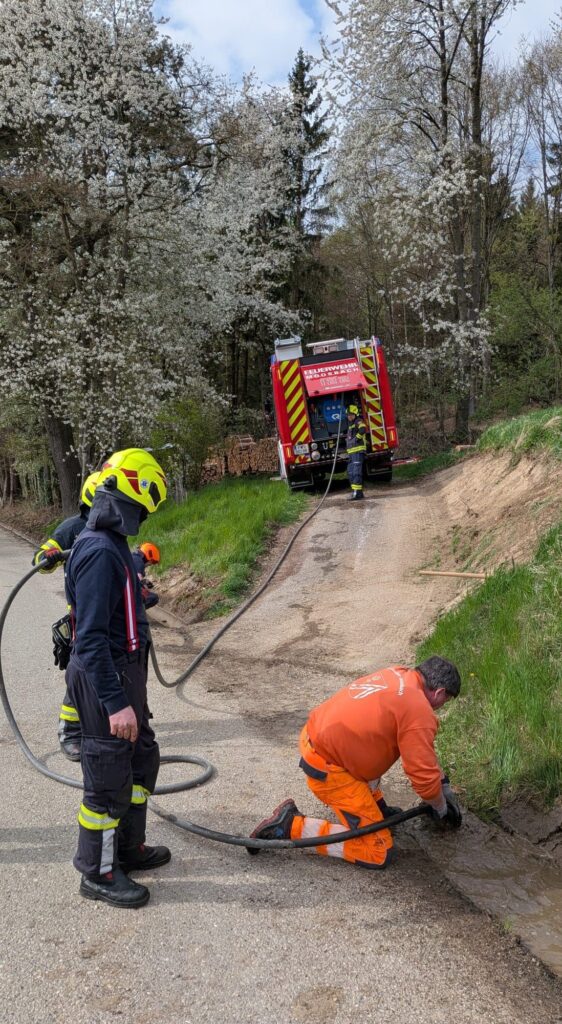 Am 16. April gegen 15:00 Uhr rückte die Freiwillige Feuerwehr Moosbach mit dem Tanklöschfahrzeug zu einer geplanten Kanalspülung im Ortsteil Reisach aus.