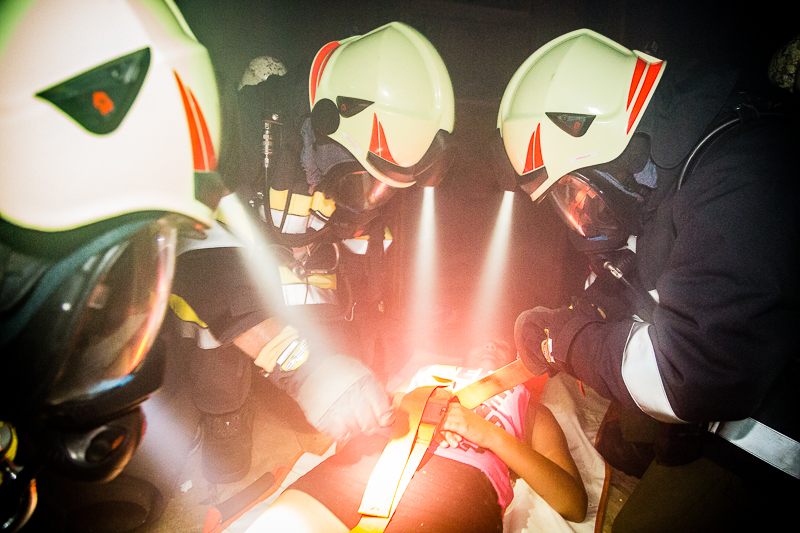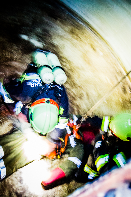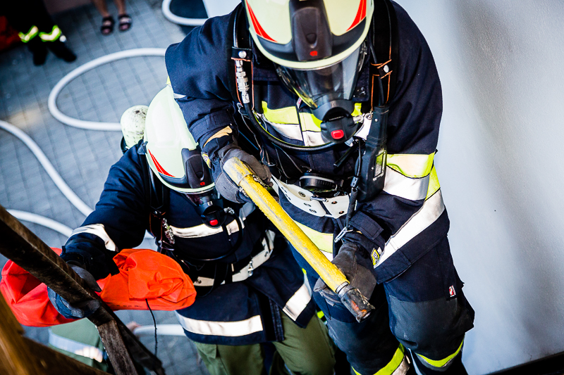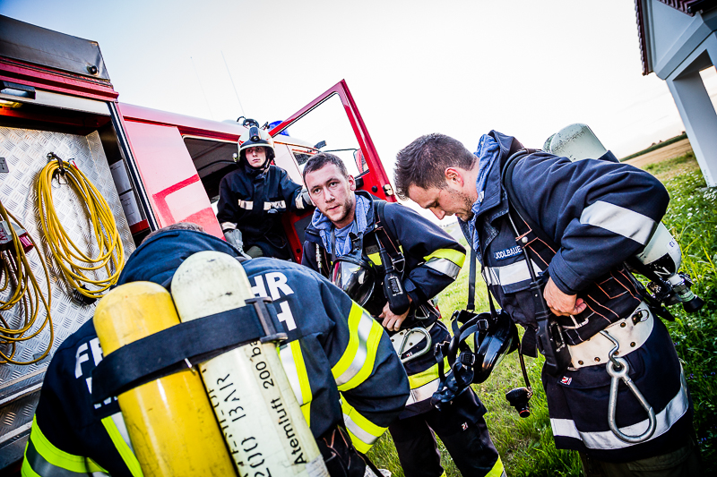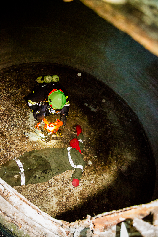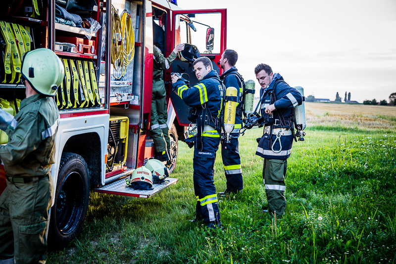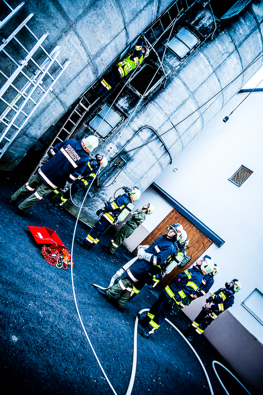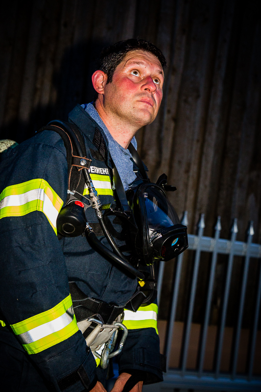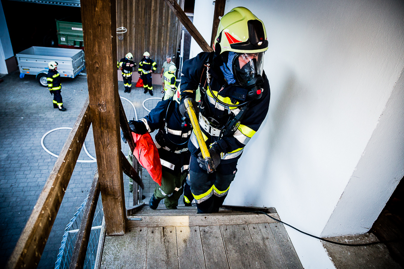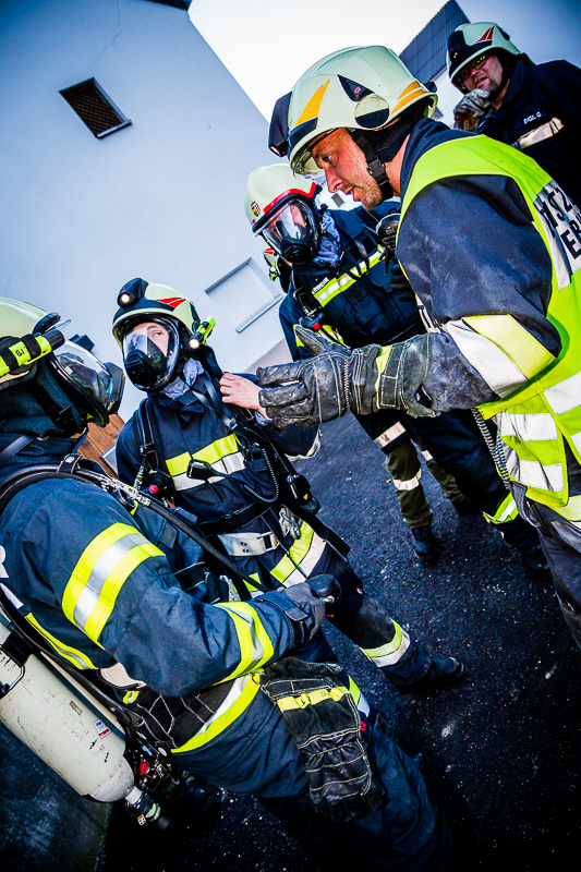 Bereits bei der Anfahrt zum Objekt wurden 2 Trupps mit schwerem Atemschutz ausgestattet. Nach Erkundung der Lage wurde der erste Atemschutztrupp mit der Suche und der anschließenden Rettung der beiden vermissten Kinder im 1. Stock des landwirtschaftlichen Objekts beauftragt, in kürzester Zeit konnten die beiden vermissten Kinder gefunden und mit Hilfe des 2. Atemschutztrupps aus dem stark verrauchten Objekt gerettet werden, während die Kinder Erstversorgt wurden, bereitete die restliche Mannschaft die Rettung der bewusstlosen Person aus dem Silo vor. Da die Person ca. 4-5 Meter tief unten lag musste der Atemschutztrupp mit Hilfe einer Rettungsleine zur abgestürzten Person (Puppe ca.85kg) abgeseilt werden. Nachdem 2 Atemschutzträger abgeseilt wurden konnte die Person mithilfe eines 5-Punkt Sicherheitsgeschirrs und der Rettungsleine herausgehoben werden.
